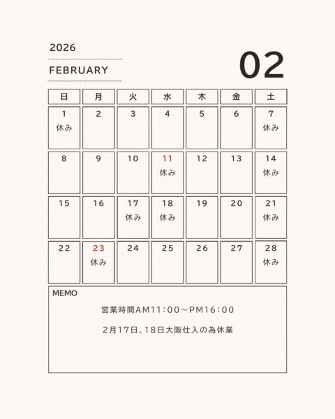🌸2月の営業日のお知らせ🌸 営業時間:11:00〜16:00 17・18日は大阪...