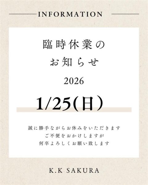 1月25日(日)はダンスコンテスト応援の為休業いたします。ご迷惑をおかけいたします...